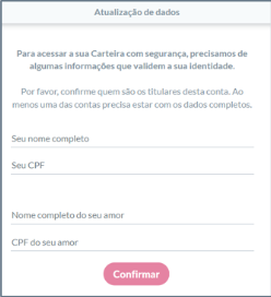 E informar os dados dos titulares da conta: nomes completos + CPFs + número de celular.